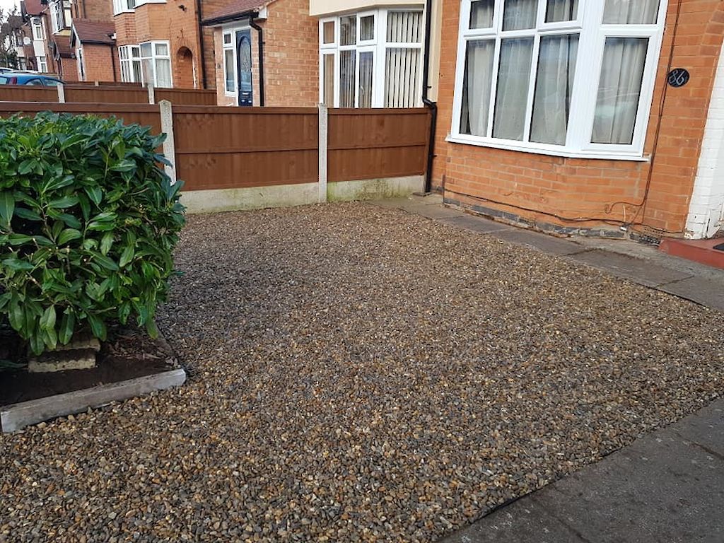A 20ft conifer taken down plus some other shrubs to make way for 2 tons of moonstone gravel, creating a more maintenance friendly space in Wollaton Nottingham.… View More
